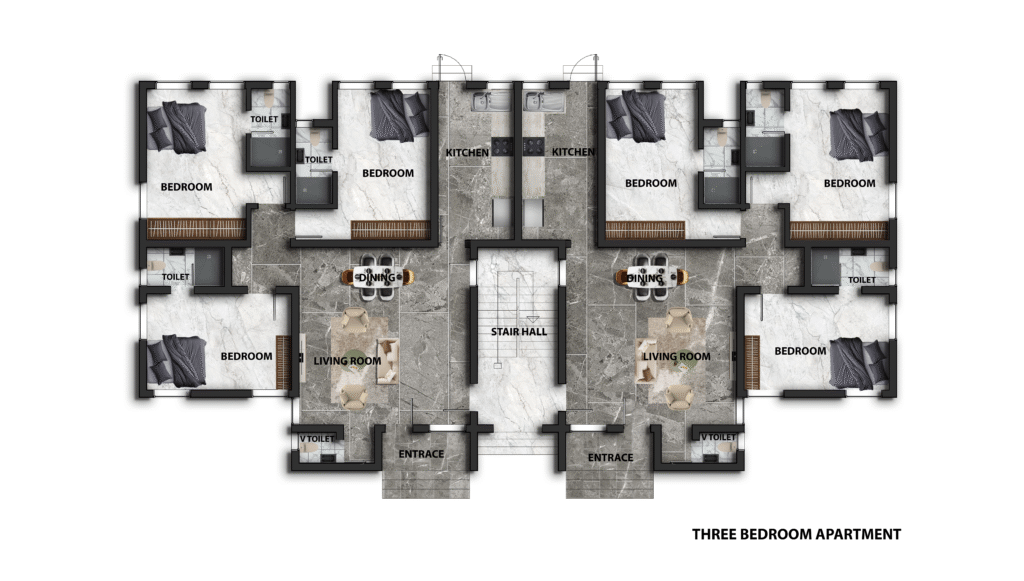 The 3-bedroom apartment is designed for residents who desire more living space without compromising on estate security and convenience. Offering a more generous layout, this unit is ideal for growing families or investors targeting higher rental returns. Its position within a well-planned estate ensures access to essential amenities, modern infrastructure, and a community-focused environment, making it a dependable long-term residential and investment option.